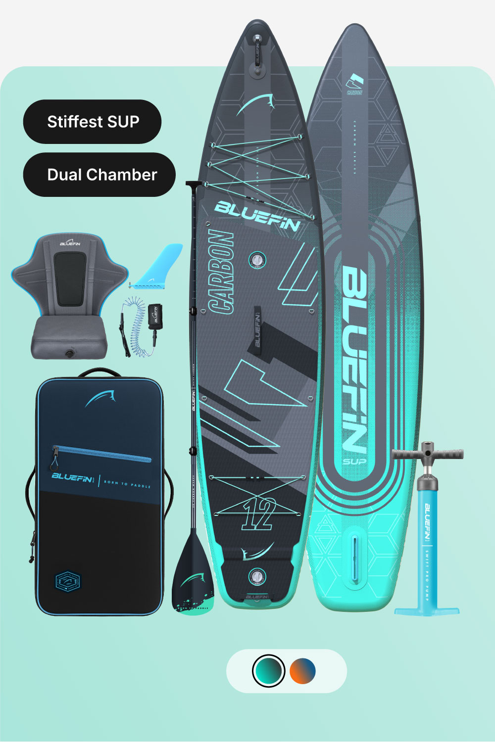 Krijg alles wat je nodig hebt in één gemakkelijk te dragen pakket. Elk Bluefin opblaasbaar paddleboard bevat een lichtgewicht verstelbare peddel, hogedruk dual-action pomp, opgerolde leash, comfortabele rugzak en premium accessoires. Of je nu een beginner of een professional bent, ons SUP-pakket heeft alles wat je nodig hebt.